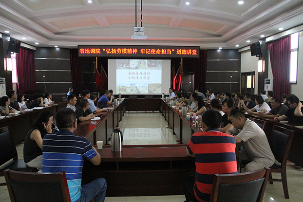 為大力培育和踐行社會(huì)主義核心價(jià)值觀、新時(shí)代地質(zhì)工作者核心價(jià)值觀,發(fā)揚(yáng)勞動(dòng)先鋒模范作用,發(fā)現(xiàn)身邊正能量,引導(dǎo)和激勵(lì)干部職工重品行、敢擔(dān)當(dāng)。地調(diào)院召開“弘揚(yáng)勞模精神,牢記使命擔(dān)當(dāng)”道德講堂活動(dòng),邀請(qǐng)基礎(chǔ)中心副主任、山西省五一勞動(dòng)獎(jiǎng)?wù)芦@得者李建榮同志做專題匯報(bào),院屬各支部委員、平陽路全體職工共80余人參加了活動(dòng)。